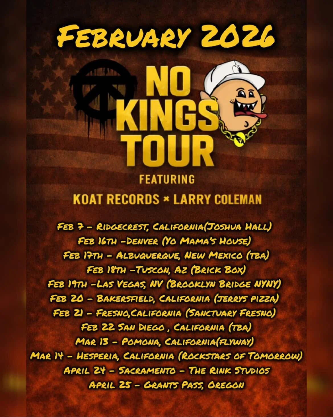 I’ll be touring along with my brother Larry Coleman 2020, Shikottii, and Big Spoon this February. Joining us will be the KOAT Records Family, Yamamoto Boss and J Bentley. We’ll be picking up local talent in each city and bringing the underground to each and every one of y’all.